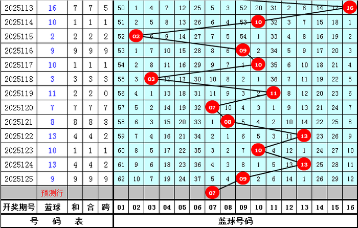 蓝球号码:最近9期别离开出蓝球号码10、03、11、07、08、13、10、13、09,蓝球号码012路个数比为2:5:2,其中0路蓝球开出最少,本期不错根除,参考蓝球04、07、13、16。